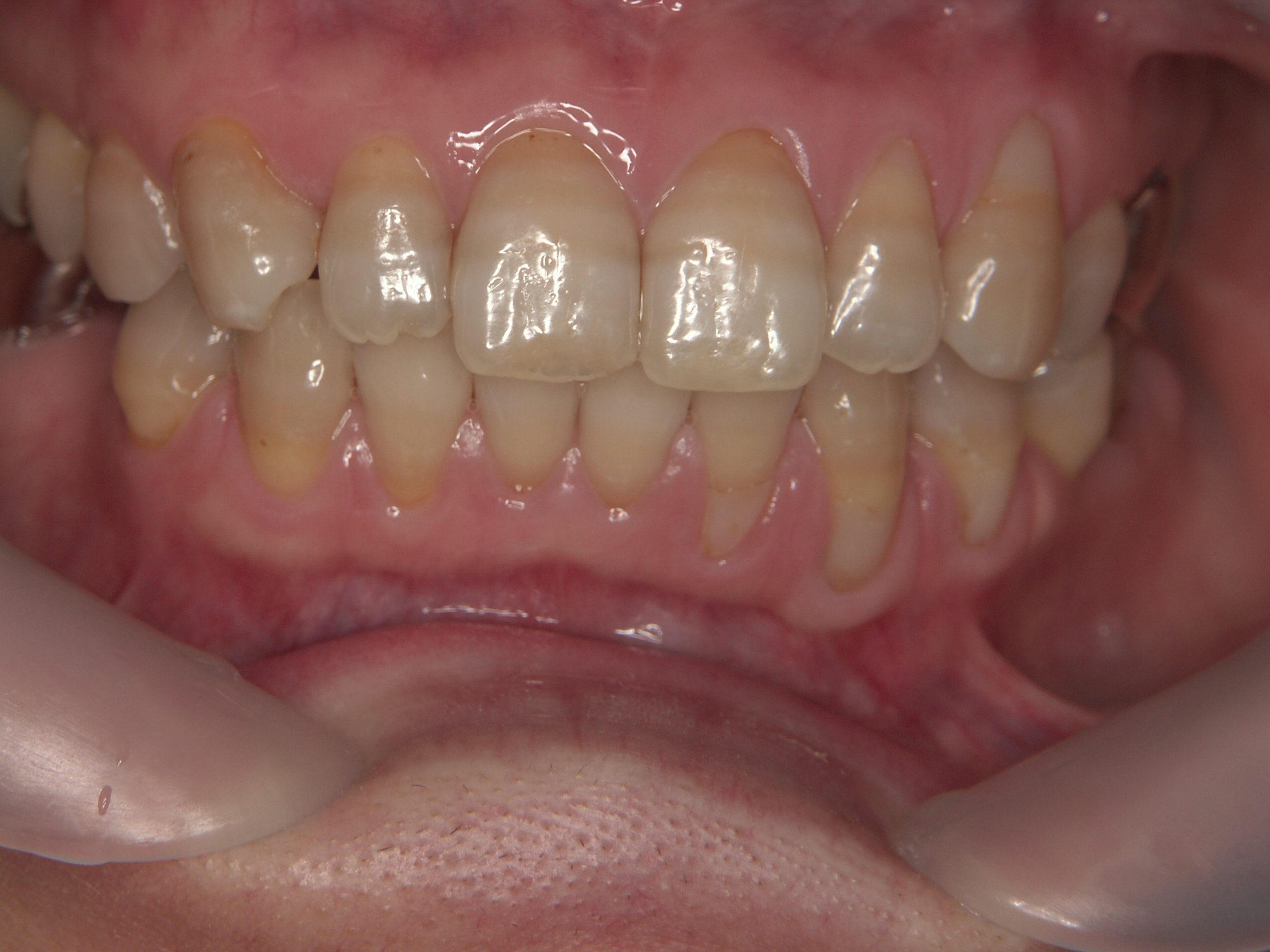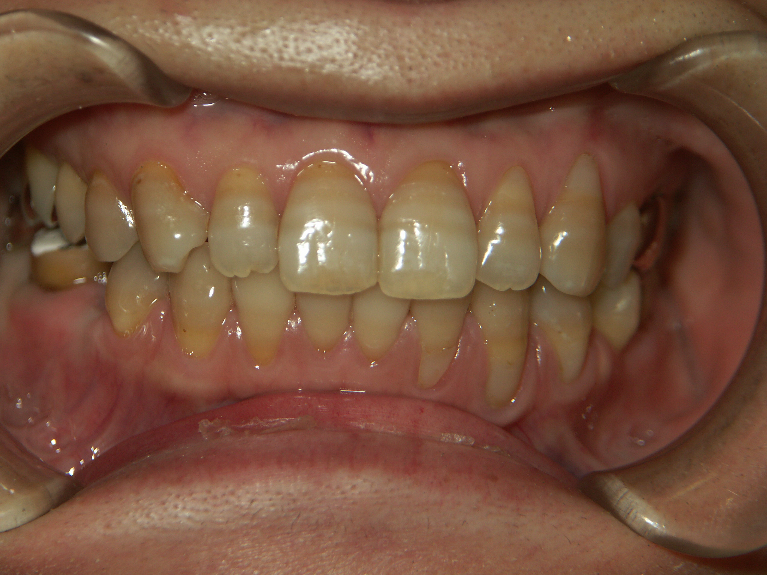 (テトラサイクリンによって変色した歯には適しません。テトラサイクリンとは、昭和40年代に流通した抗生物質で、投与された多くの人が歯の変色を起こすなどの副作用を訴えた薬品です)そんなテトラサイクリンで変色した歯の症例です。