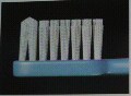 歯間部にも毛先が入り、清掃性がいい②先端部の毛に角度をつけた、ワンタフト形状