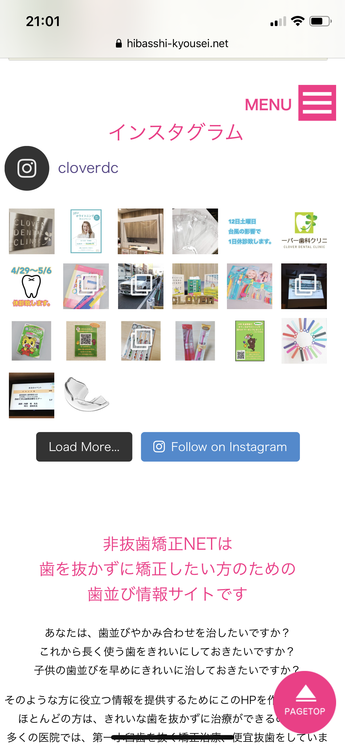 TOPページ歯に関するブログKD♪ Instagram 2020年10月14日 KD♪ Instagram 矯正のサイト非抜歯矯正netとクローバー歯科のサイトのトップページにインスタグラムを設置してもらいました! 可愛いです❤️ キュンです❤️ « KD♪ □ナイトメア R□ 焼肉ランチ » [ 診療時間 ] 月~日 10:00-13:00 / 14:30-19:00 [ 休 診 日 ] 祝祭日 午前は12:30・午後は18:30が最終のご予約可能時間です。 〒214-0013 神奈川県川崎市多摩区登戸新町404古谷ビル1F JR南武線・小田急線「登戸駅」 徒歩 2 分 ●電車をご利用の方 登戸駅を降り、商店街の前を通ると右手に踏切が見えます。 その斜め左前方のビルに看板が見えます。(登戸駅より徒歩2分) ●車をご利用の方 当医院は多摩沿線道路沿いにあります。 お会計時にコインパーキング利用券をご提示頂ければ サービス券をお渡しいたします。