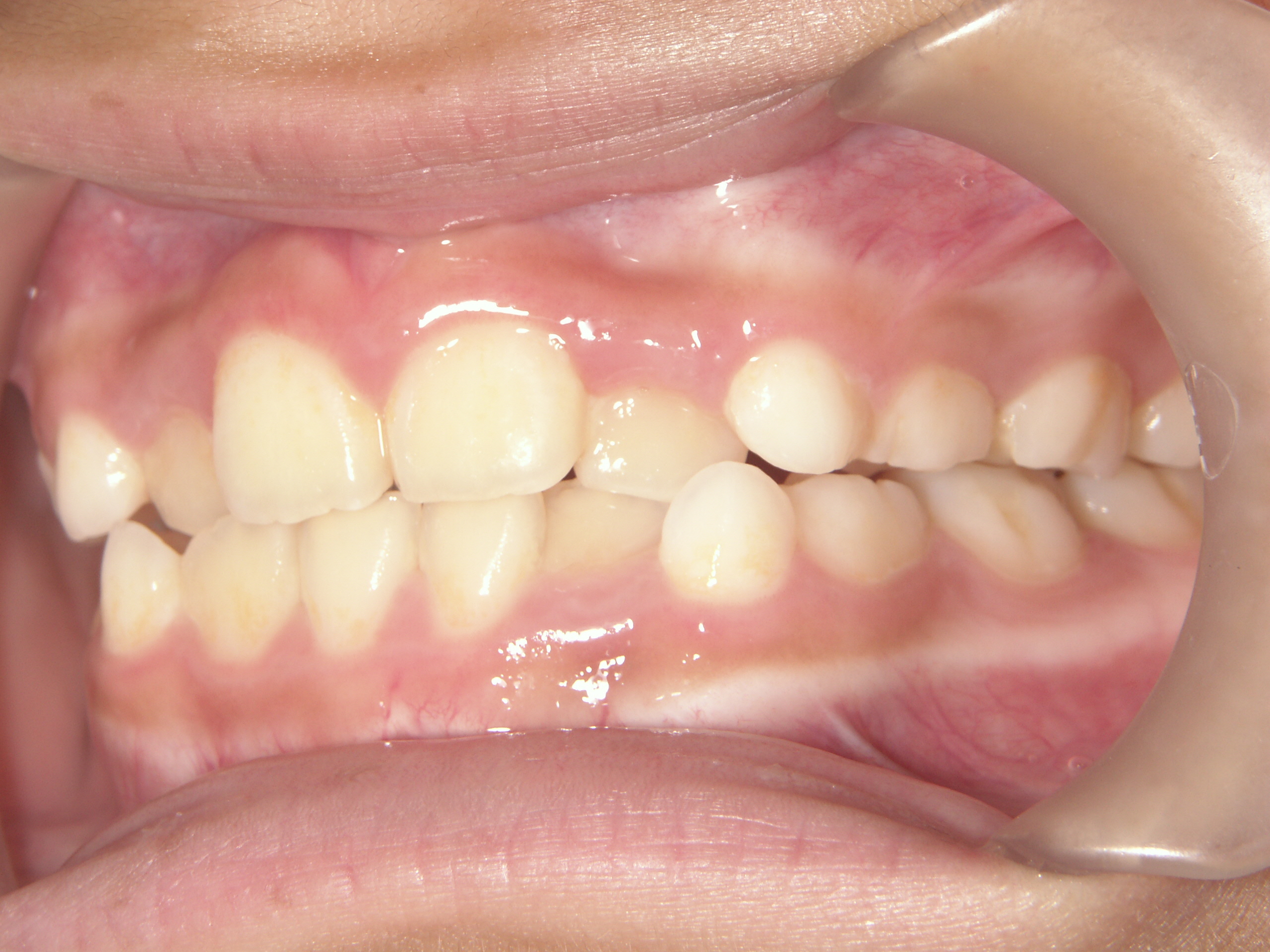左の前歯二本は下の歯を無事飛び越えました。