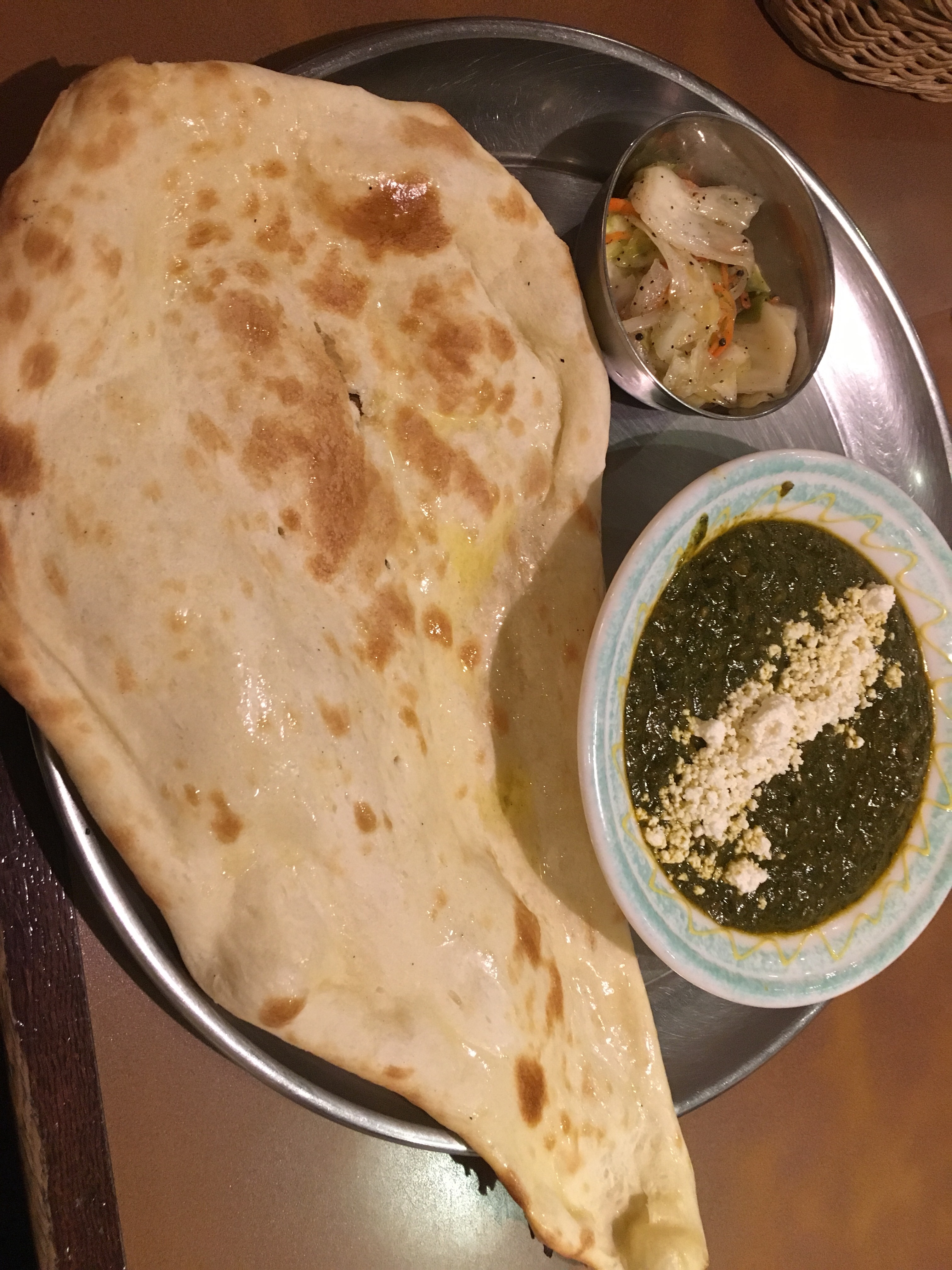 2017年12月12日 Kw □ インドカレー やはりナンが食べたかったので、二日続けて出先でインドカレー。 美味しいナンってなんだろう。 本場のナンはモチモチではなく薄めなのかなぁ??と思いつつ美味しくいただきました