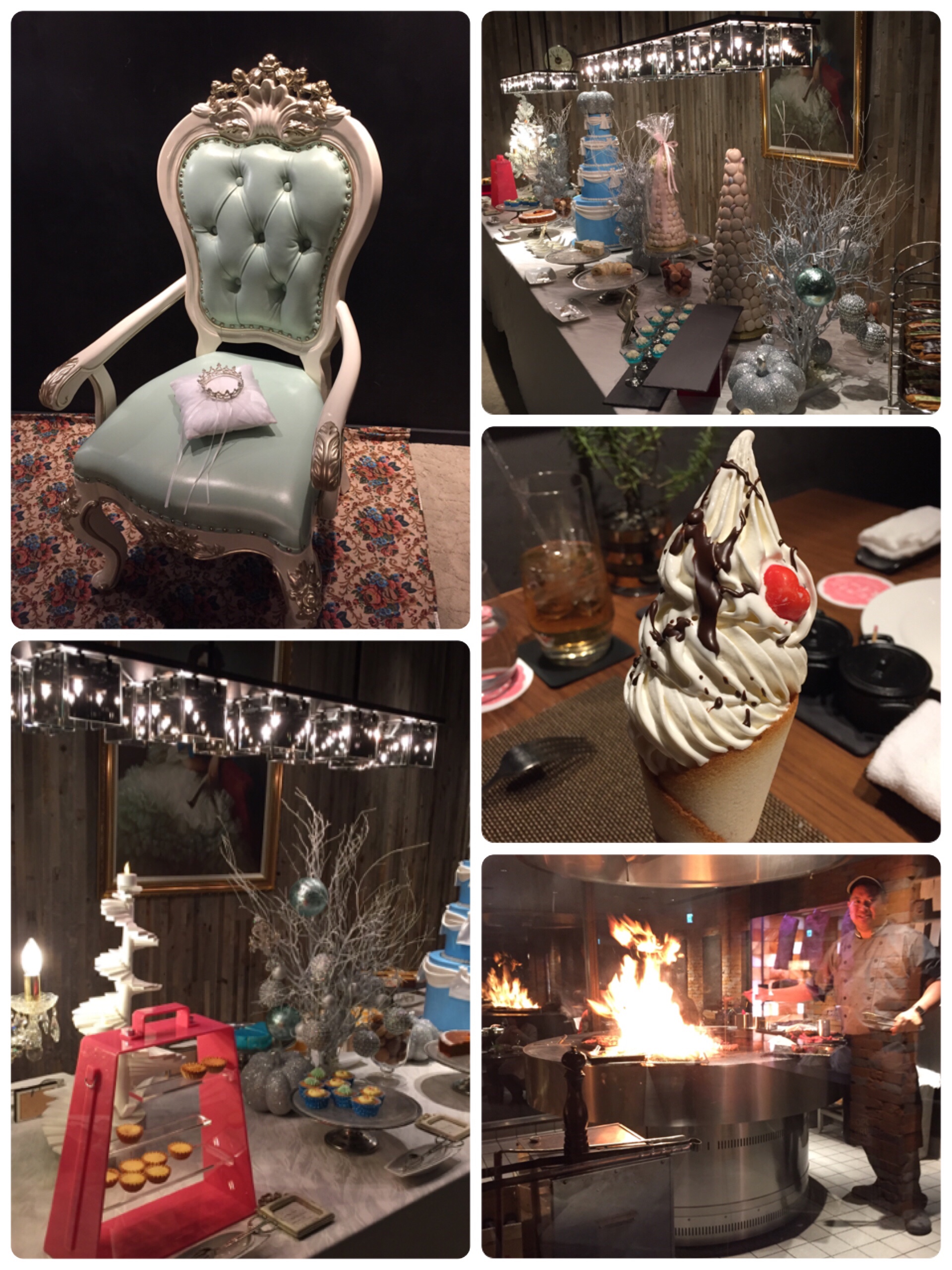 4種のお肉が焼きたてでサラダ、パン、1階のマーブルラウンジのスィーツも食べ放題!