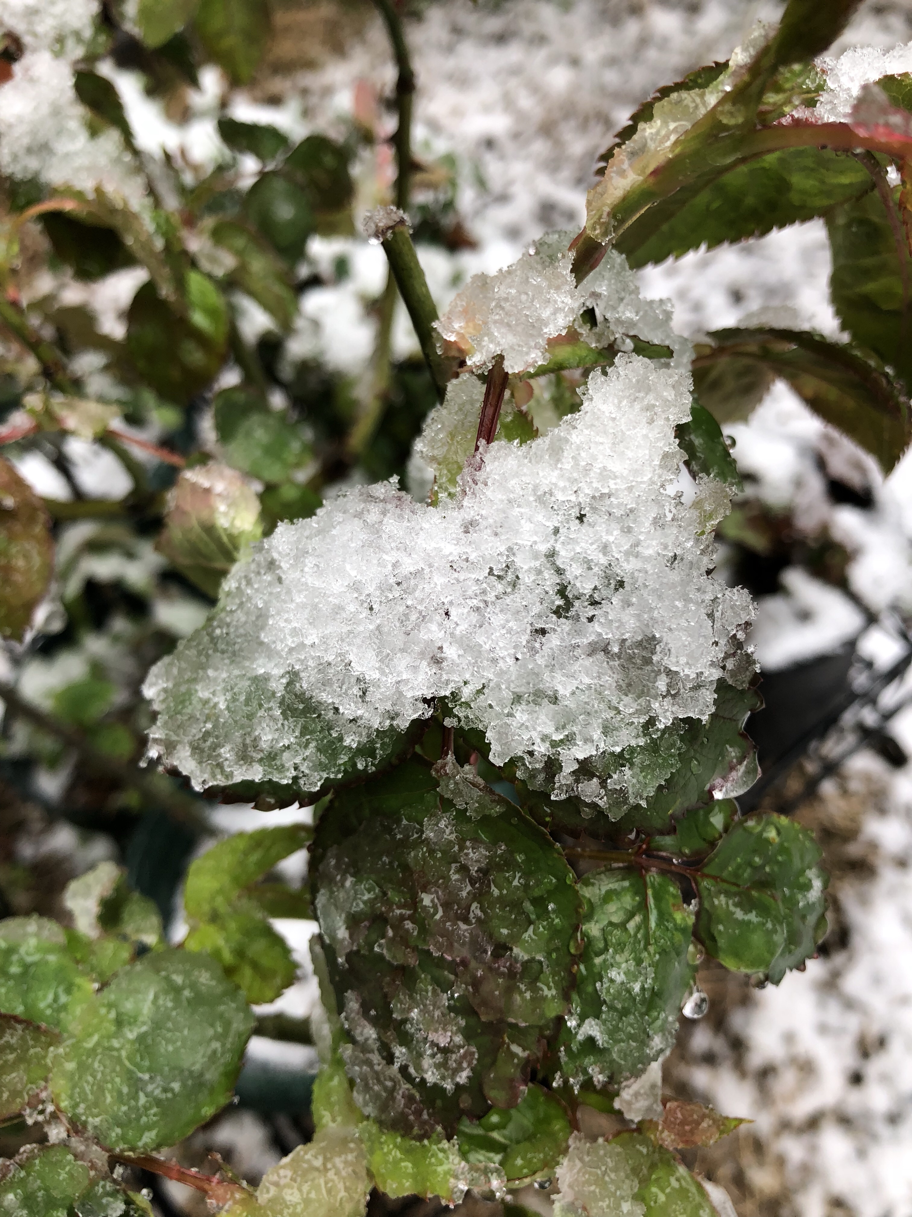 せっかく新芽が出てウキウキでしたがまさかの雪☃️
