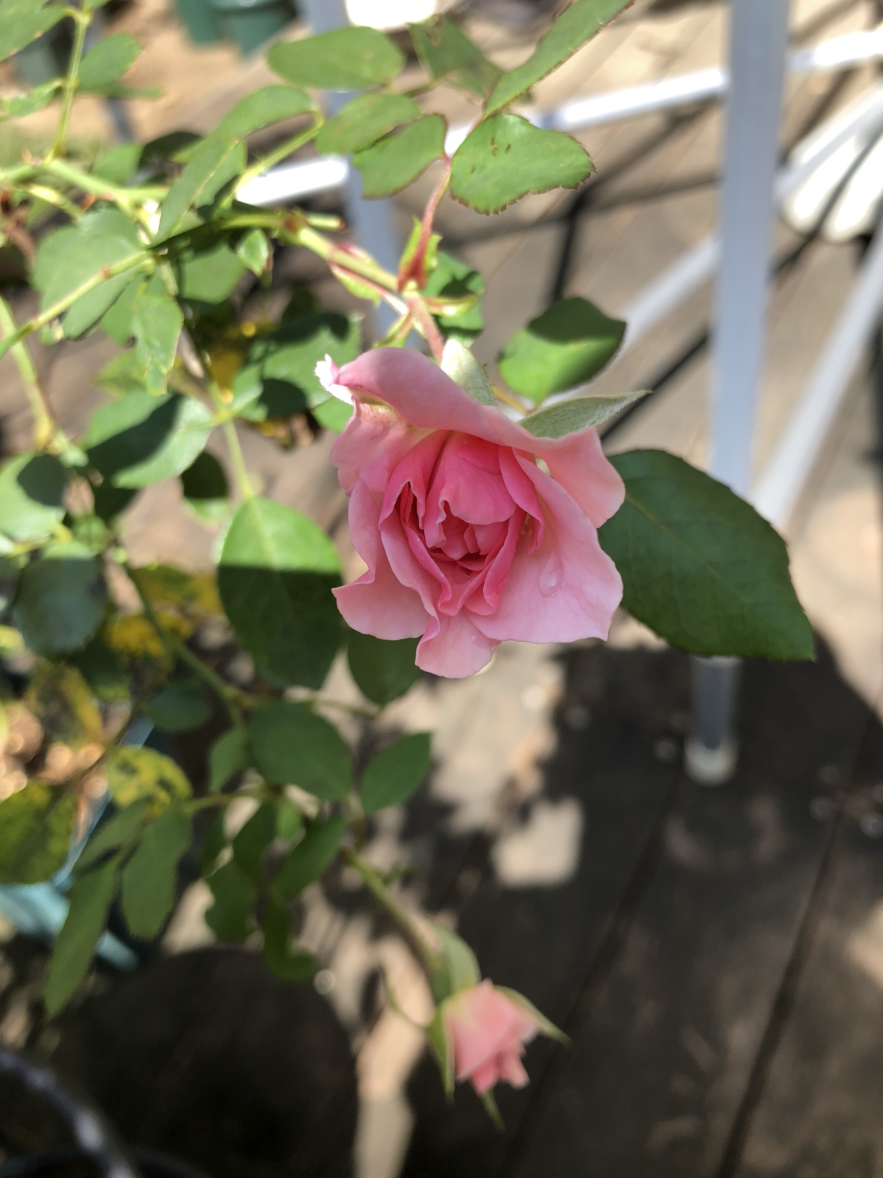 修景バラとして主張もうるさすぎず、花殻摘み忘れるとローズヒップが出来ると言う優れバラ…