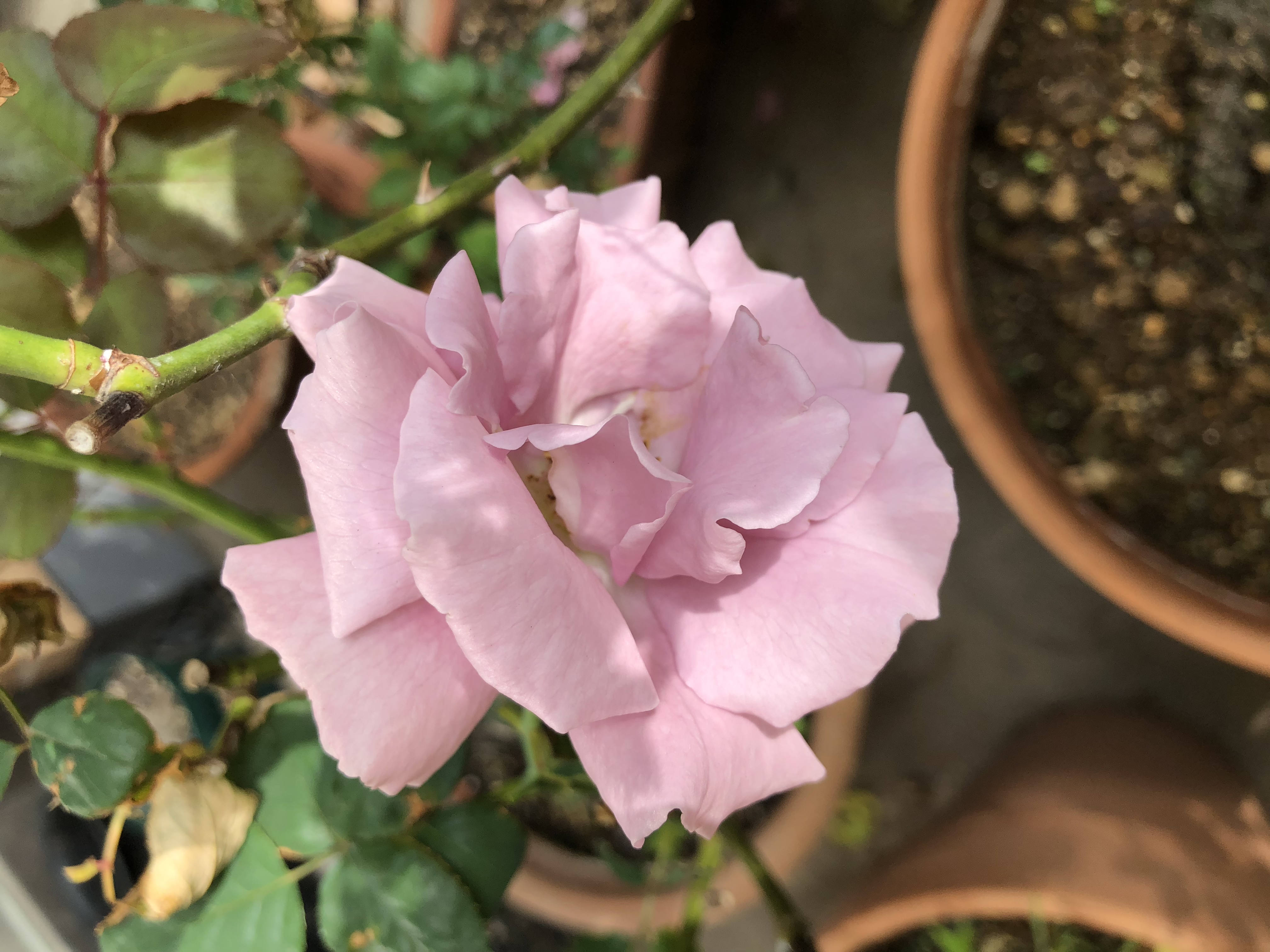 2018年11月03日 KD♪□エンジェルフェイス 気がついたら枝の合間にエンジェルが咲いてました。 強香のバーバラとブルームーンに挟まれてるのであまり分からず咲ききっておりました… フリフリが伝わるかなー。