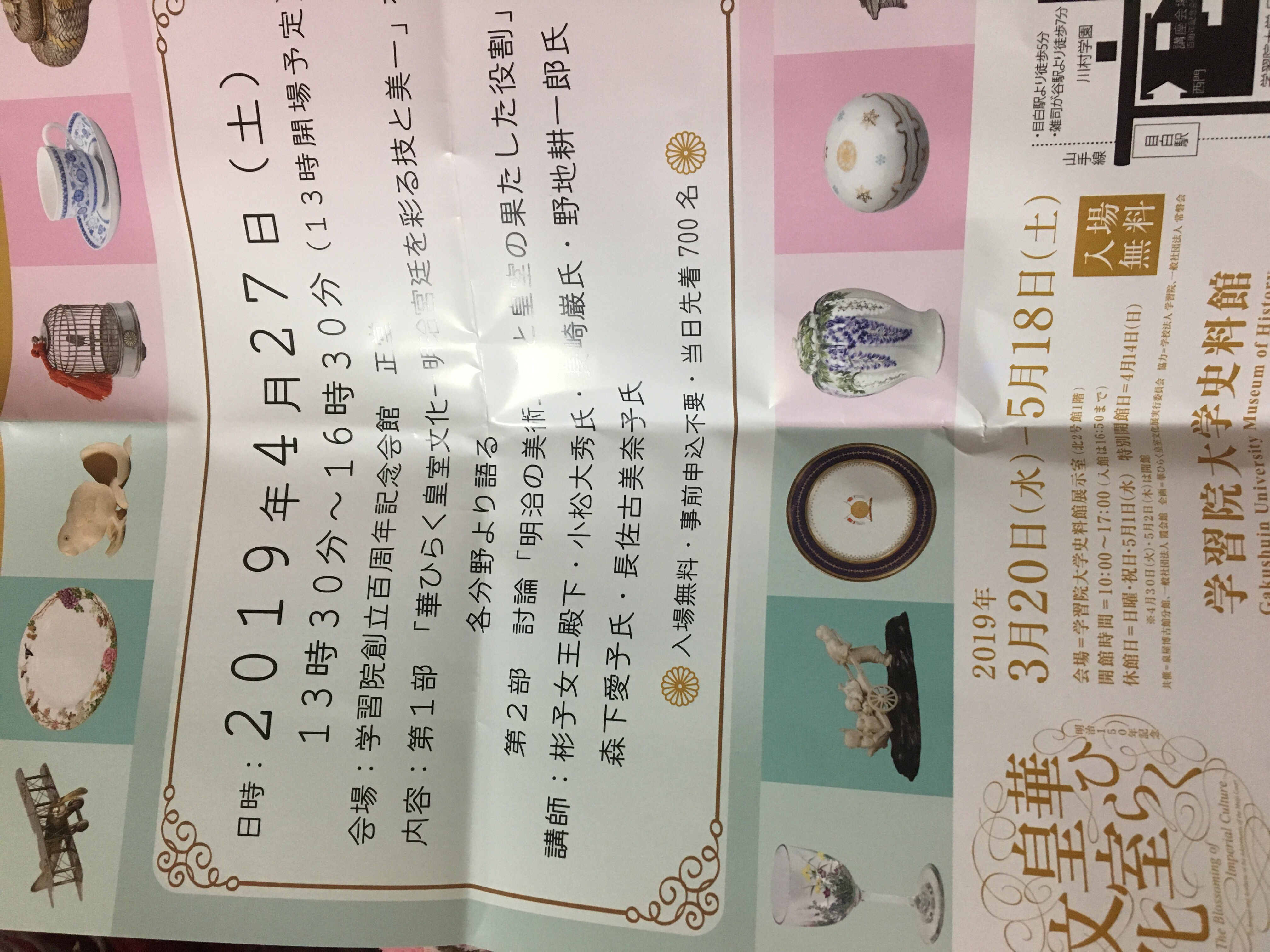 東京会場は六本木か目白なのですが、展示品が違うので目白の学習院にしました。