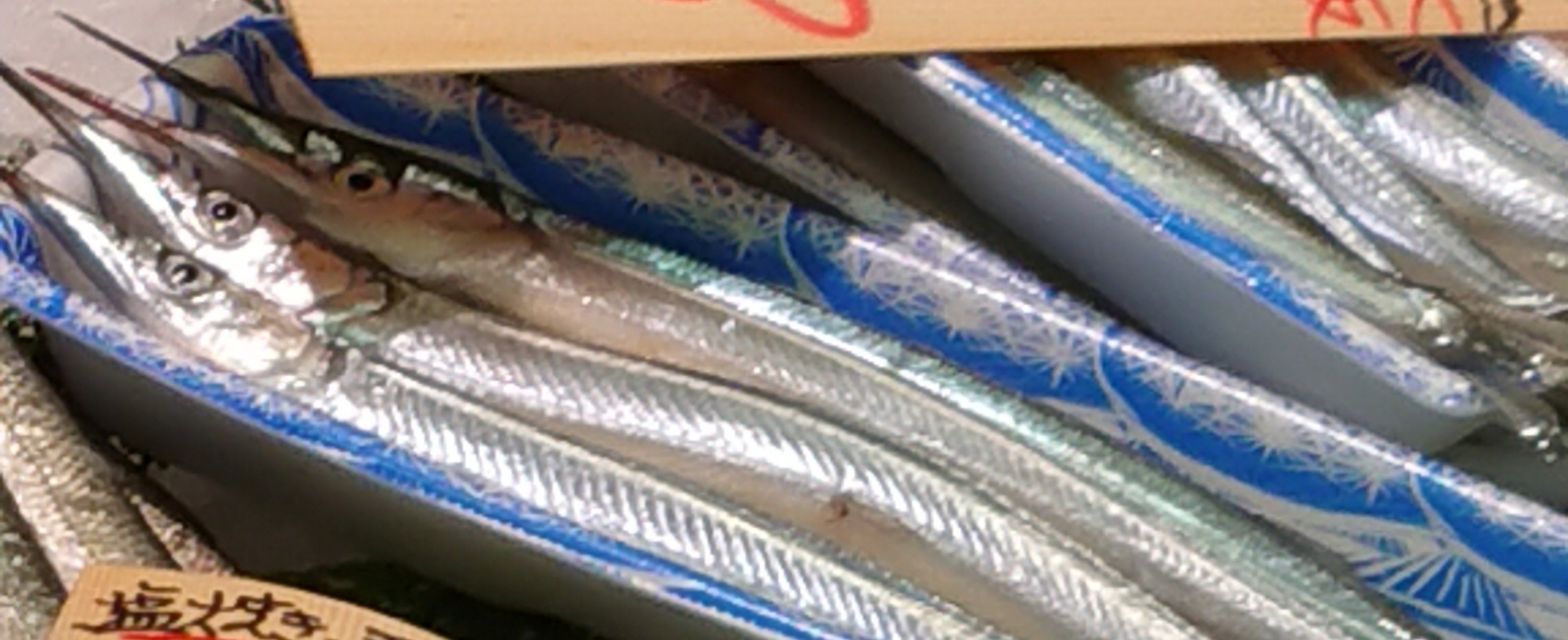 お魚屋さんにて、サヨリを発見。