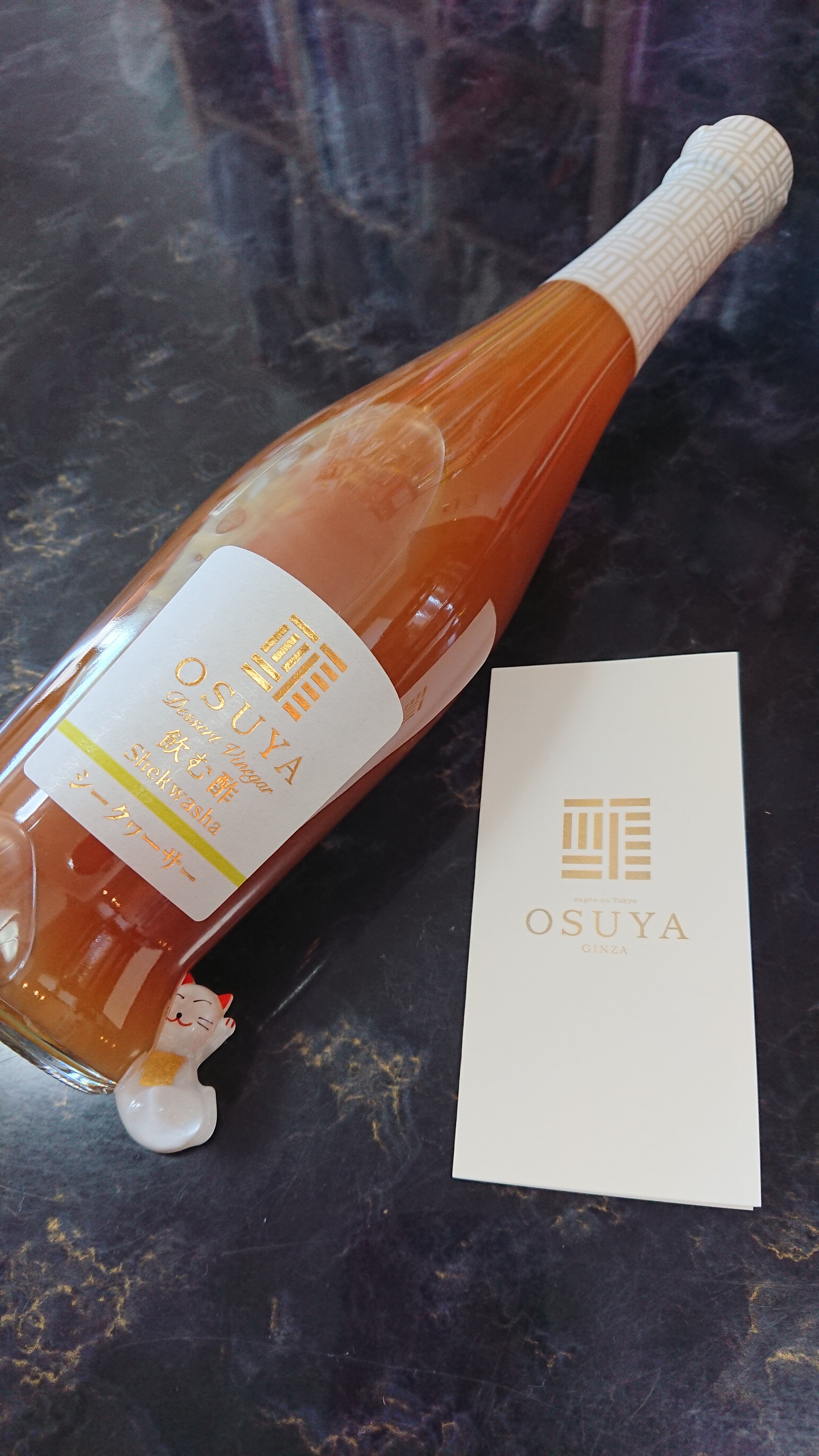 2019年09月13日 kw□ OSUYA 酢ムリエの内堀光康さんのデザートビネガー。たまたま試飲したところ、美味しくてお買い上げ。シークワーサー、気分転換にもバッチリな爽やかです。酸食症にならないように気を付けます。。。