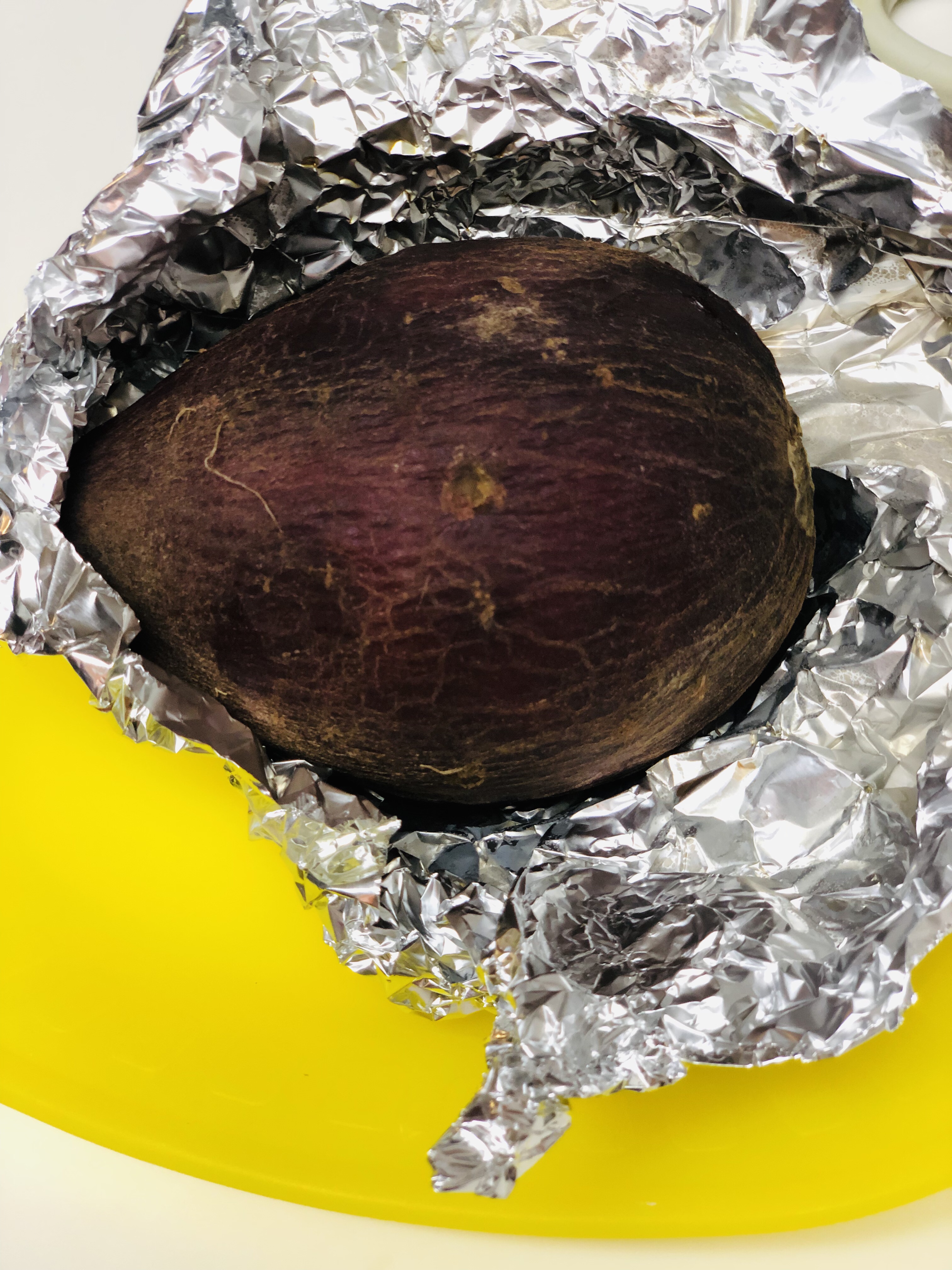 お店で球状のシルクスイートが目に入りまして、やや長めにトースターで焼き上げました。