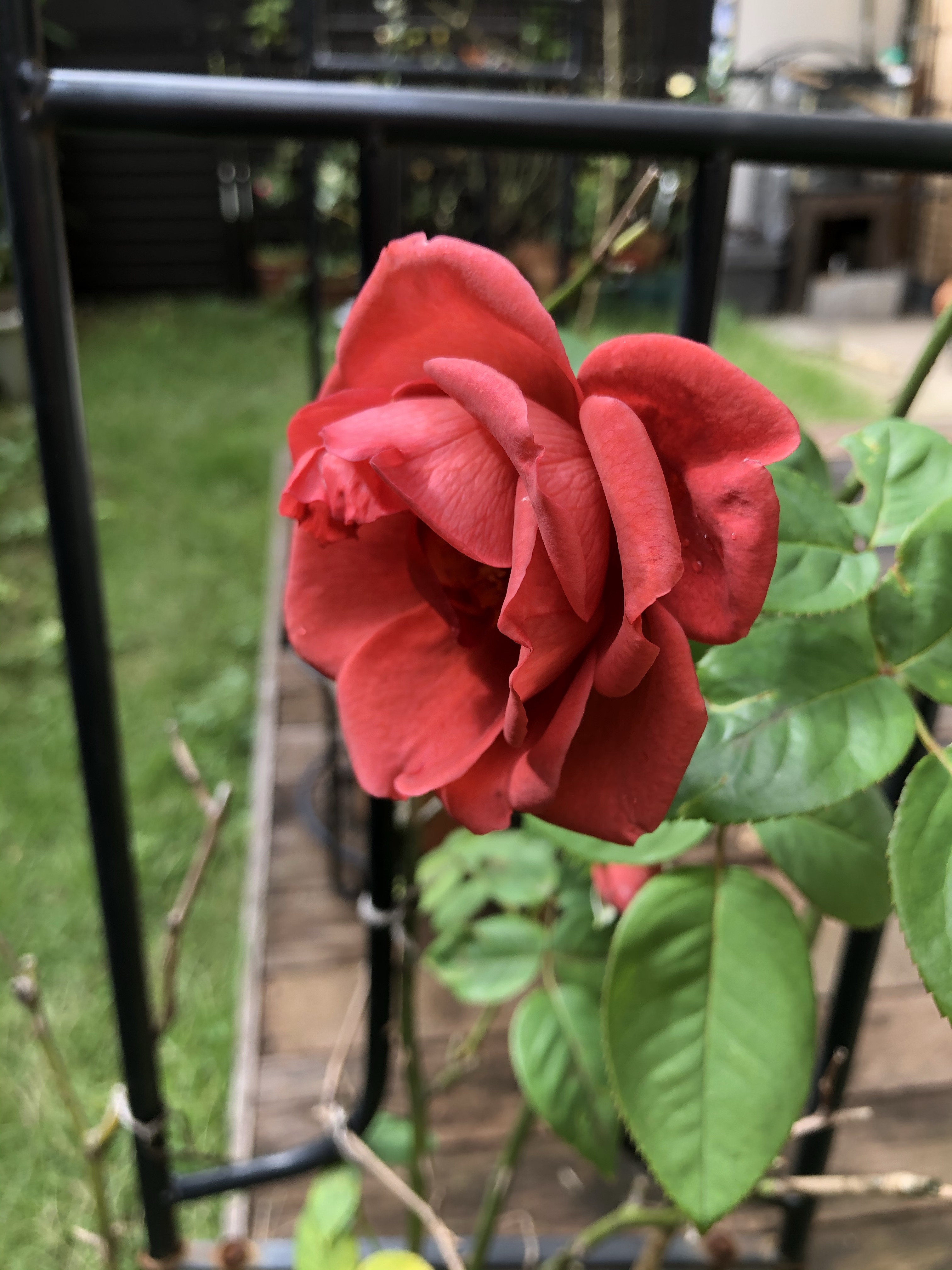 2020年10月12日 KD♪ □テラコッタ 花弁少ないなぁ。 でもキッチリとした美しい形のテラコッタ。生田緑地バラ苑のチョコレートサンデーも咲いてるかなー。 茶色系と黒バラをまとめたかったのですが、難航中。。。