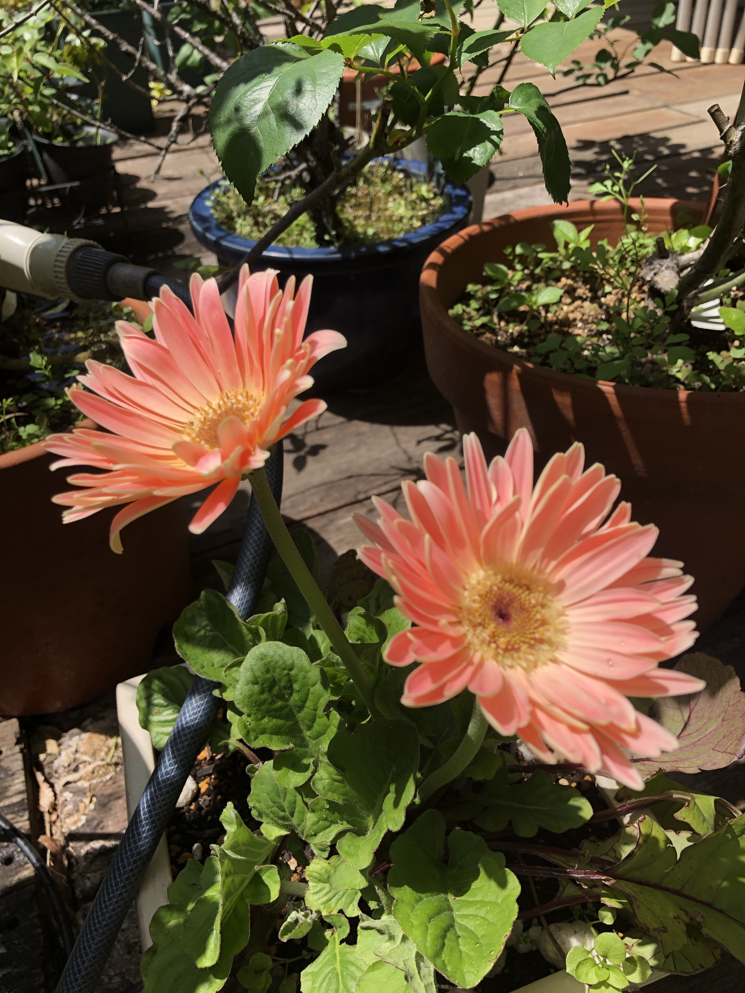 2021年04月21日 KD♪ □ガーベラ 株分けした娘も本家の娘も立派なピンク色の花を咲かせてます。 リビングからよく見える場所に移動して愛でてます。本当は次のつぼみの為に切り花にしてしまうのが良いのですが…