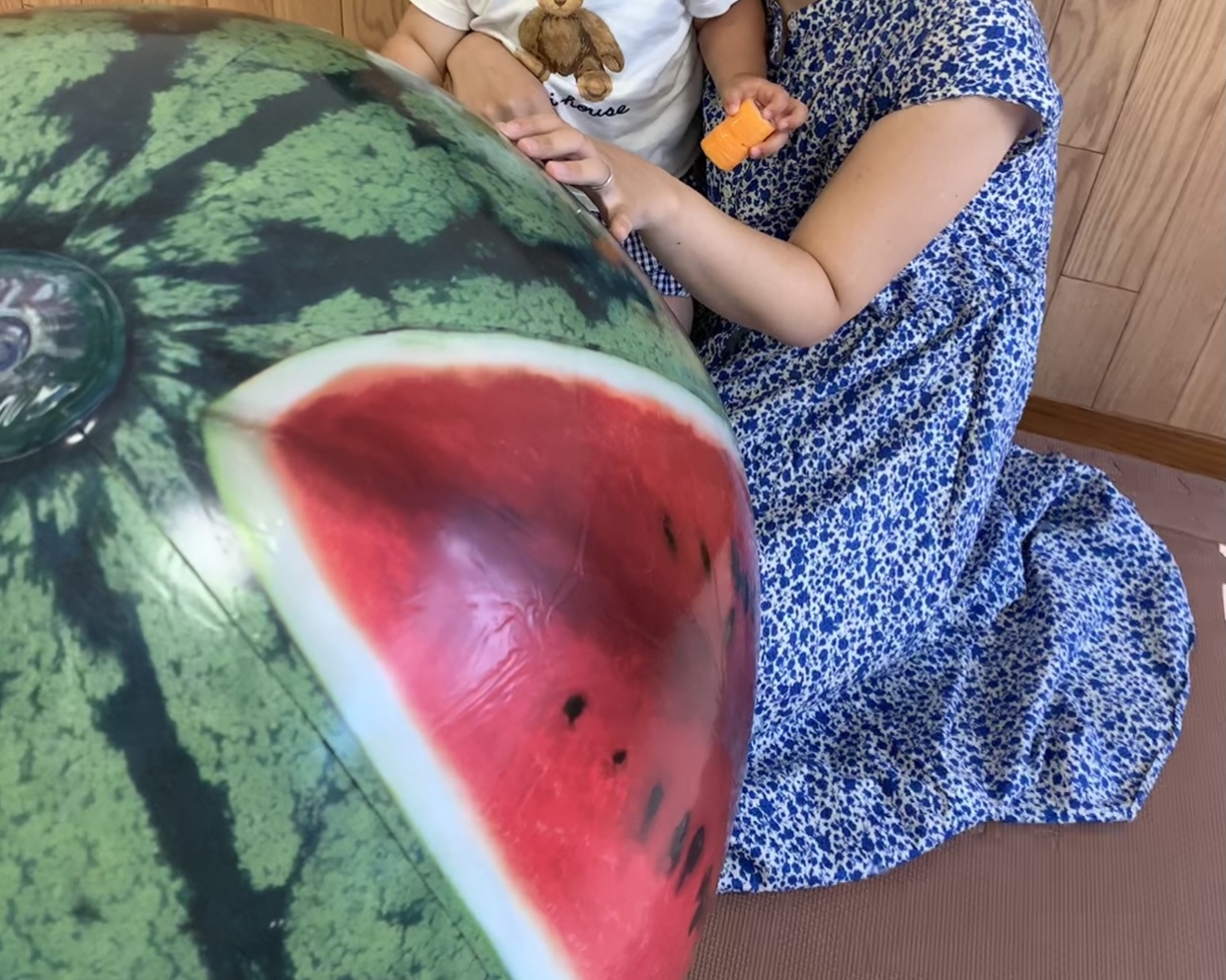 今日は子育て広場で手作りのスイカ割りをしてきたようです。