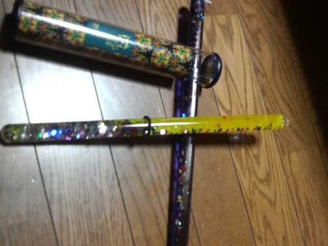 棒のなかに、星のスパンコールみたいなのと砂と液体が入ってて、傾けると砂時計のように流れ落ちてくるんです★