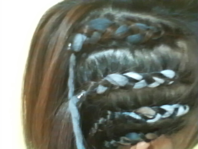 編みこむときに、毛糸も一緒に編んでいるので部分で色が違ってお気に入りの髪型です★
