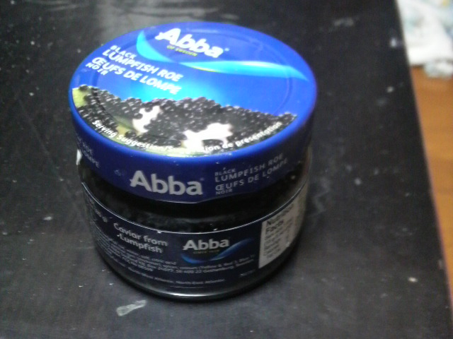楽しみにしていたのに・・・・(泣)キャビアだけ残っていたので食べたのですが、裏の日本語で記載されているところに「タンゴウオの黒キャビア」