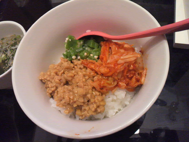納豆とオクラとキムチです(^^♪