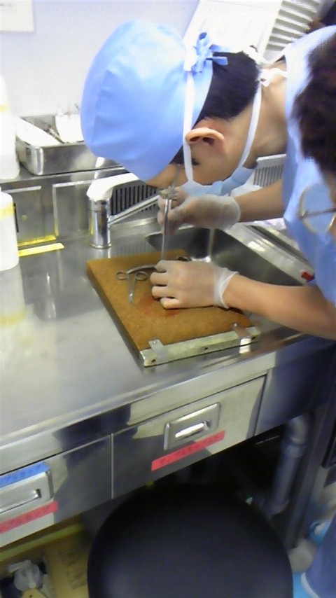 やっぱり解剖はコルク板なんですね~。2センチくらいの石が2ヶ、破片のようなものが少々。
