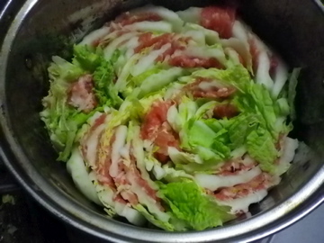豚肉と白菜で、鍋・・・・これ何て言う料理だっけ?