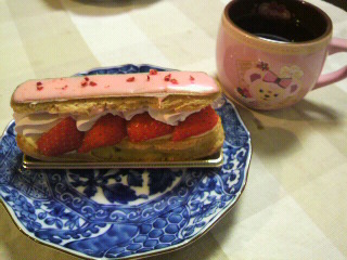 下の娘は、ラフランスがイヤと1人 イチゴのエクレア。