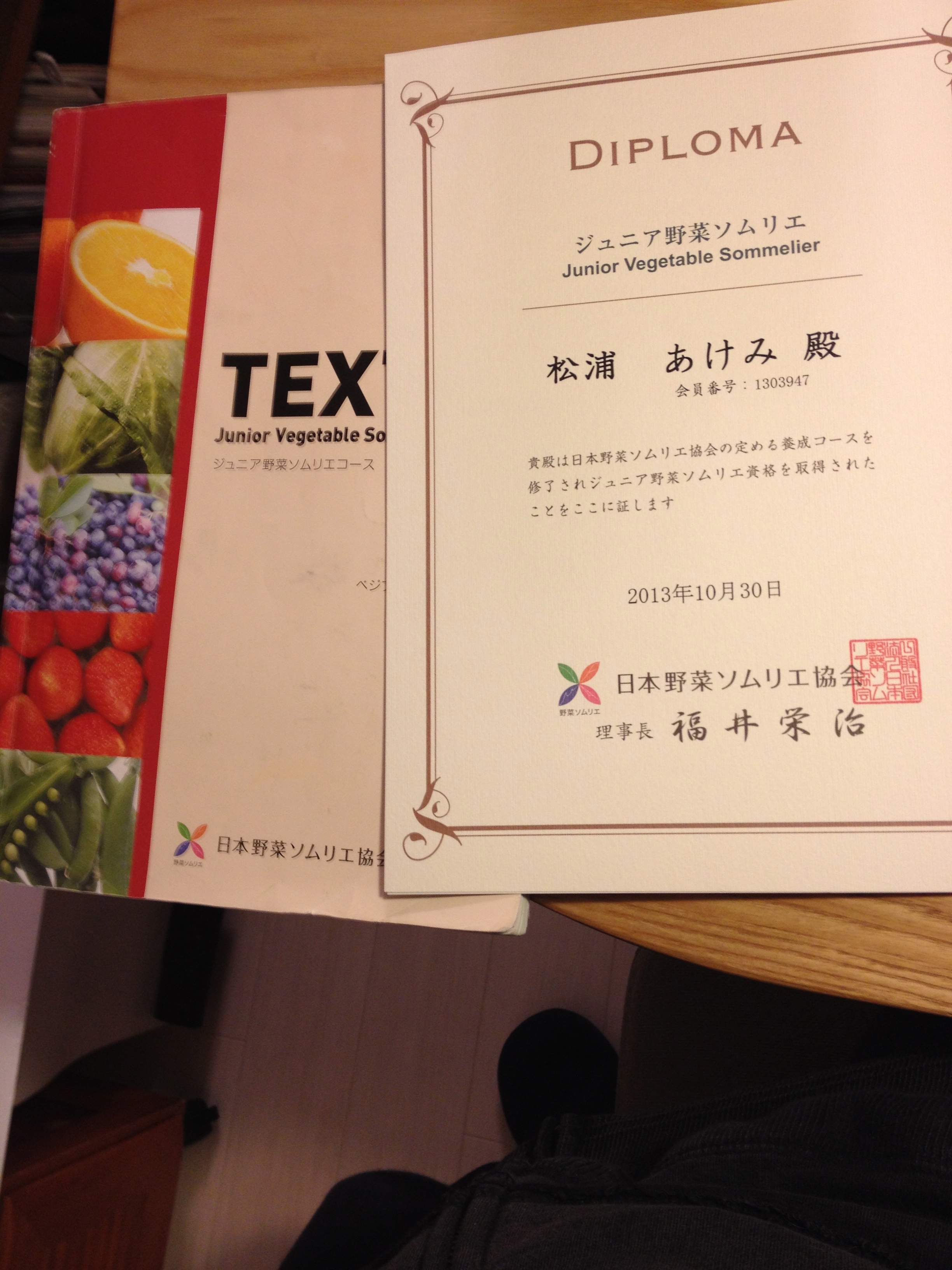 ジュニア野菜ソムリエの資格をとりました!!人生で三つ目の資格、まぁこれを取ったからといってもジュニア…じゃ役にたたないとは思いますが、