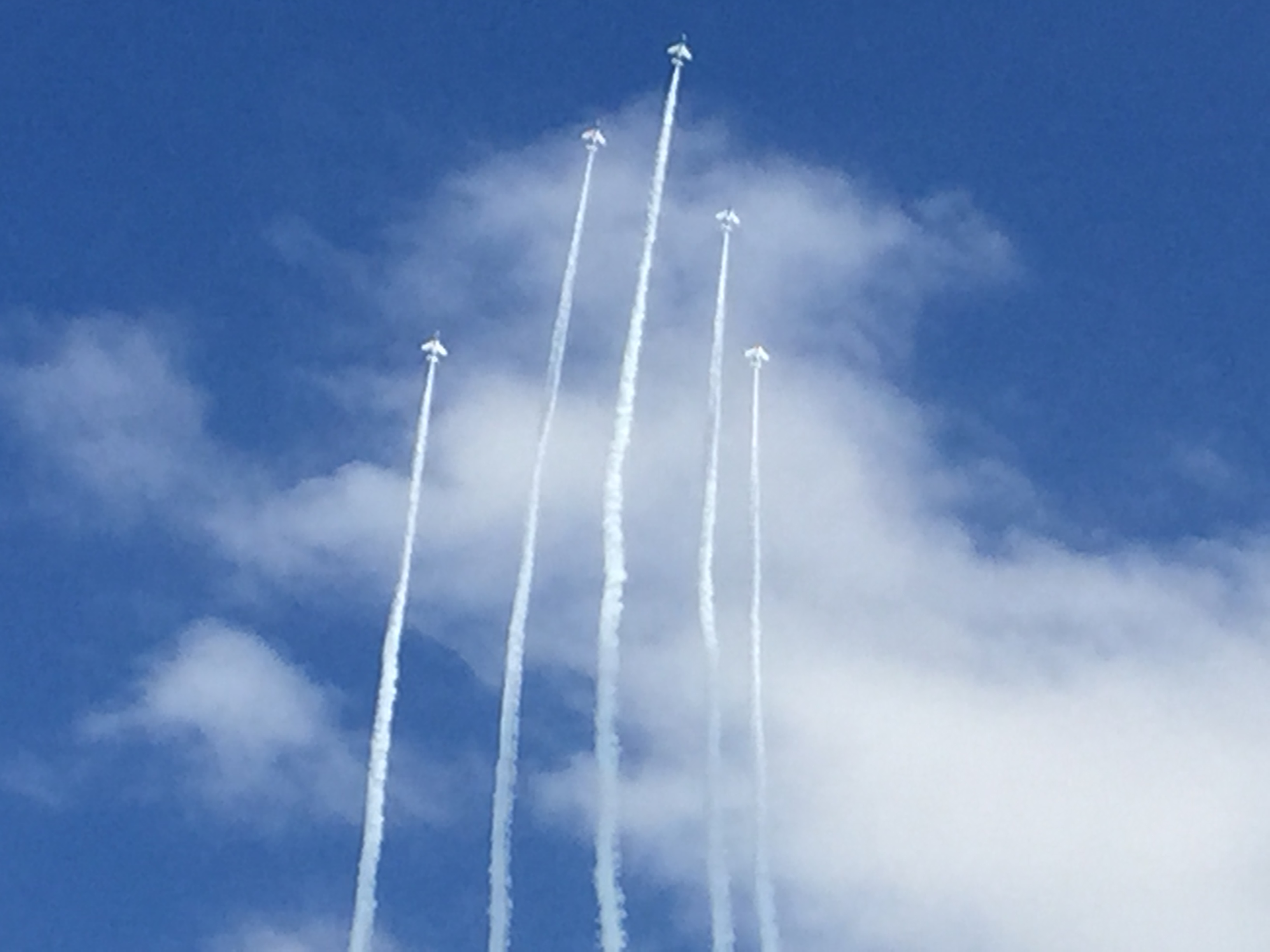 ちょっと風が強いのは残念でしたが、6機の編隊飛行とか空に煙で図形を書いたりとか、もう本当に