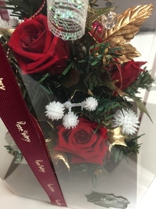 ローズギャラリーさんのクリスマスツリーに赤いミニバラが