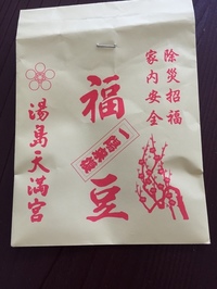 母が娘にありがたい湯島天満宮のお守りとお豆を送ってくれました。