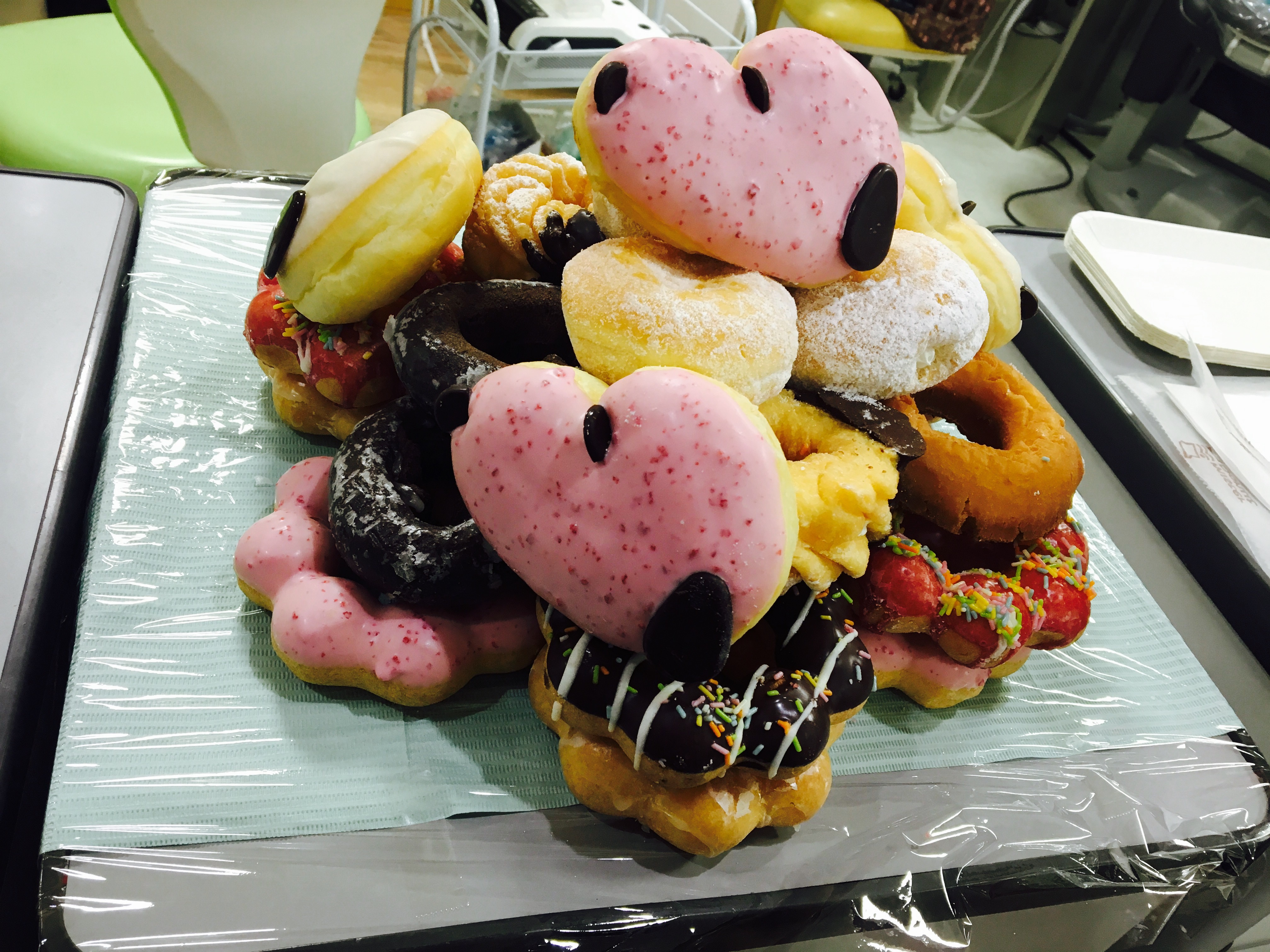 2016年12月25日 P ◽︎ ドーナツタワー これが例のドーナツタワーです。 念願の‼︎ クリスマスパーティもとい、ドーナツパーティー、参加して下さった皆のおかげでタワーにできました。食べるときはジェンガみたいで大変楽しかったです。 ちなみに今年はドーナツにピザ、肉、芋、と野菜なしのフードファイトとなりました。