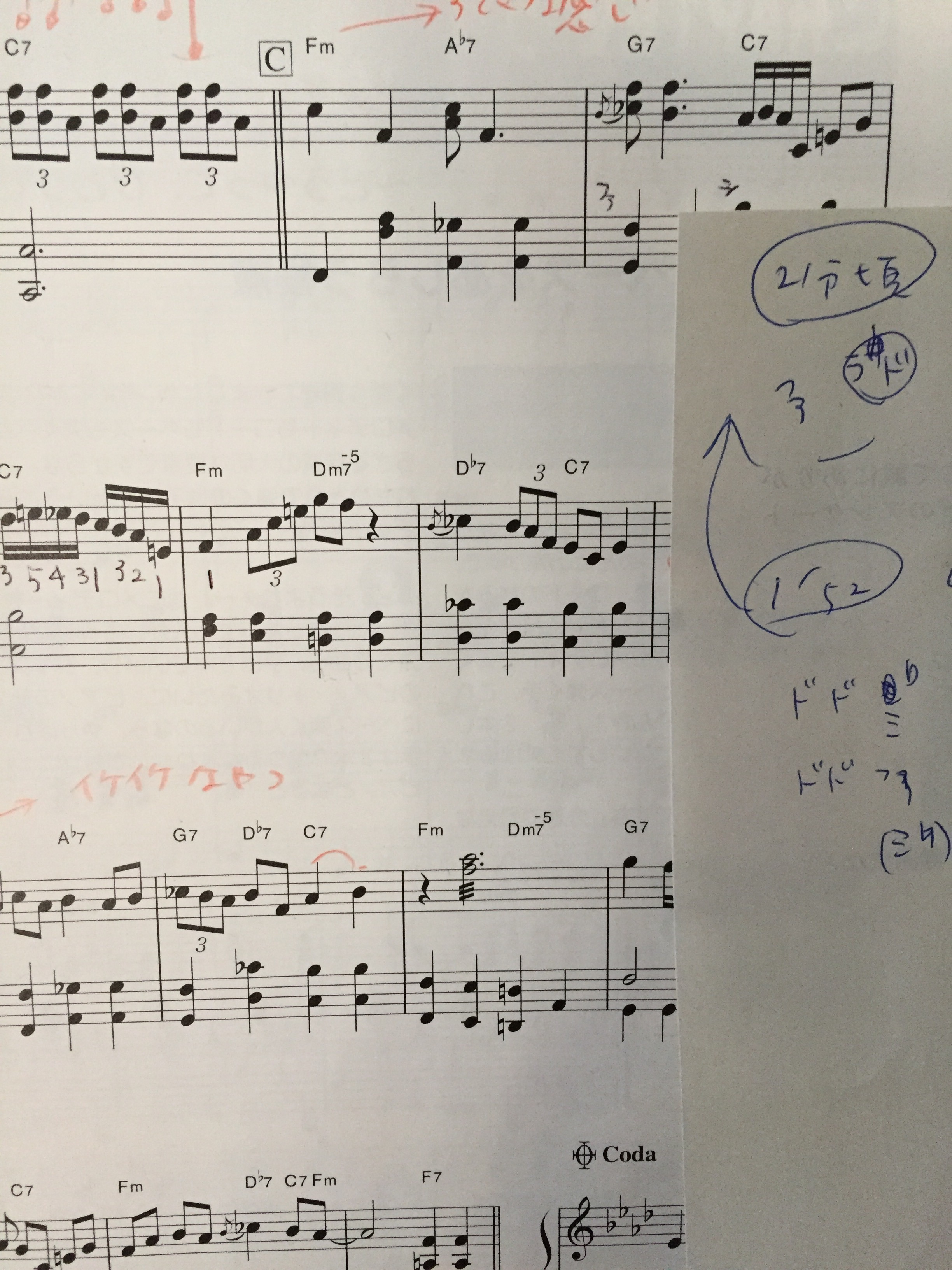 2017年02月01日 KD♪ □ 宿題 クラシックジャズ。 1960って書いてあったような。の簡単な楽譜を見つけて練習中。先日先生よりアドリブ増やそうよ!と宿題が出ました! 初挑戦〜(^^) ま、そもそも技術力はないので好きなフレーズを書き出してアレンジして直してもらって足したり引いたり。の予定。 プロの方はアドリブ通常2回転と先生からききましたが、YouTubeで本家の演奏を必死でカウントしながら聴くのですが、めっちゃ回してる!!!で、迷子。。。 簡単で笑カッコよくてノリノリな仕上がりになりますように!