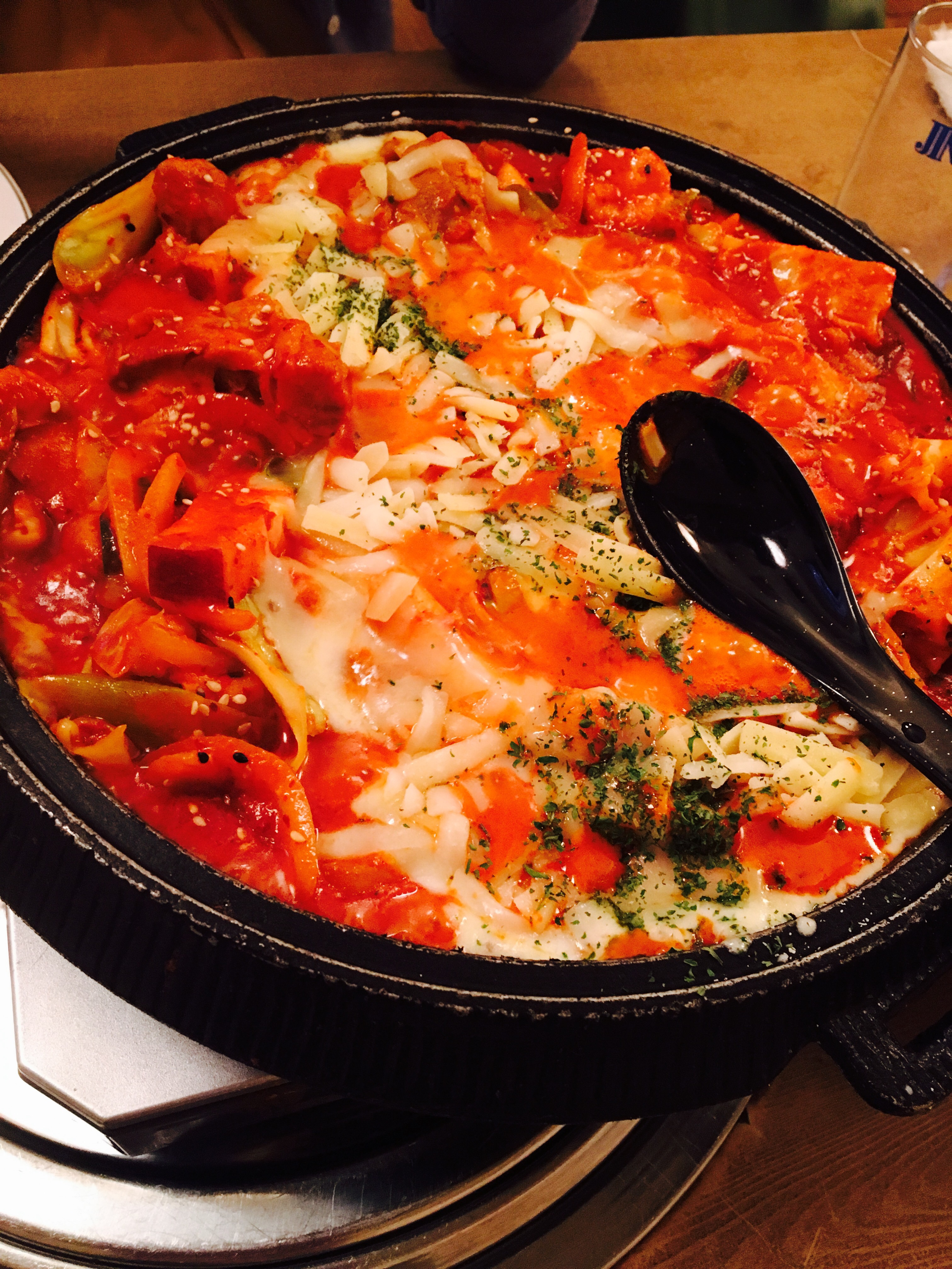 2017年04月09日 P ◻︎ チーズタッカルビ 今流行りのチーズタッカルビを食べに新大久保まで行ってきました。 おめあてのお店に行く前にとにかくチーズタッカルビの文字を沢山みました。本当に今流行っているんですね!そしてお目当の有名店はなんと3時間待ち… 仕方なく別のお店に入りました。ここでも30分待ち… 初めて食べましたが、本当においしい!!! チーズとコチュジャン合う!! おかわり自由のナムルと共にいくらでも食べていたい…と思いました。