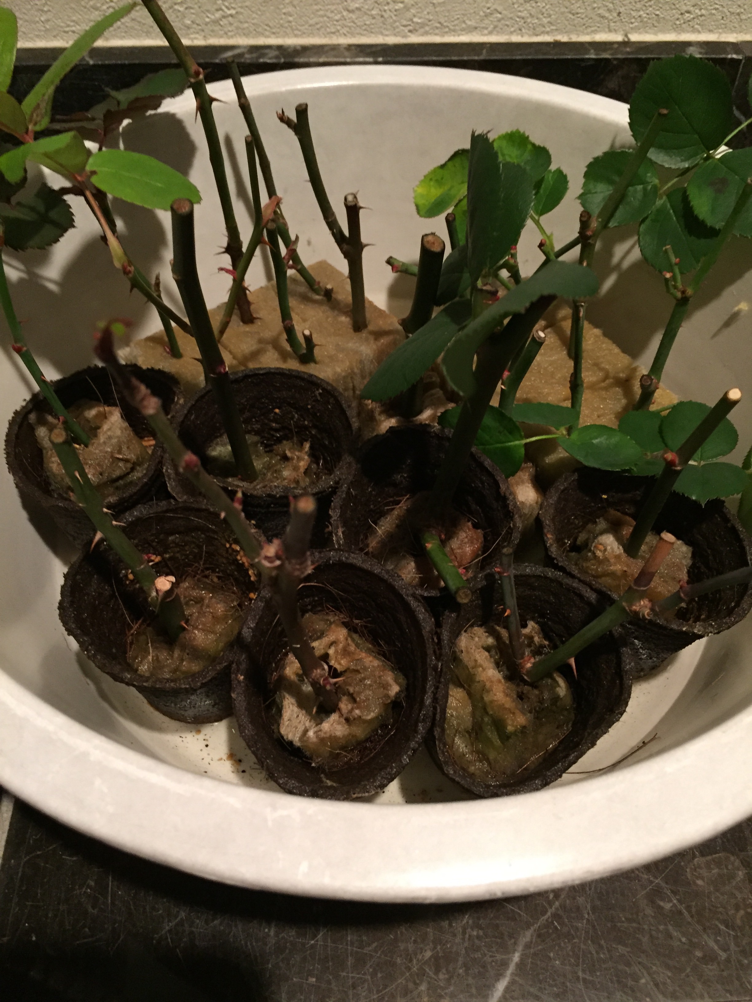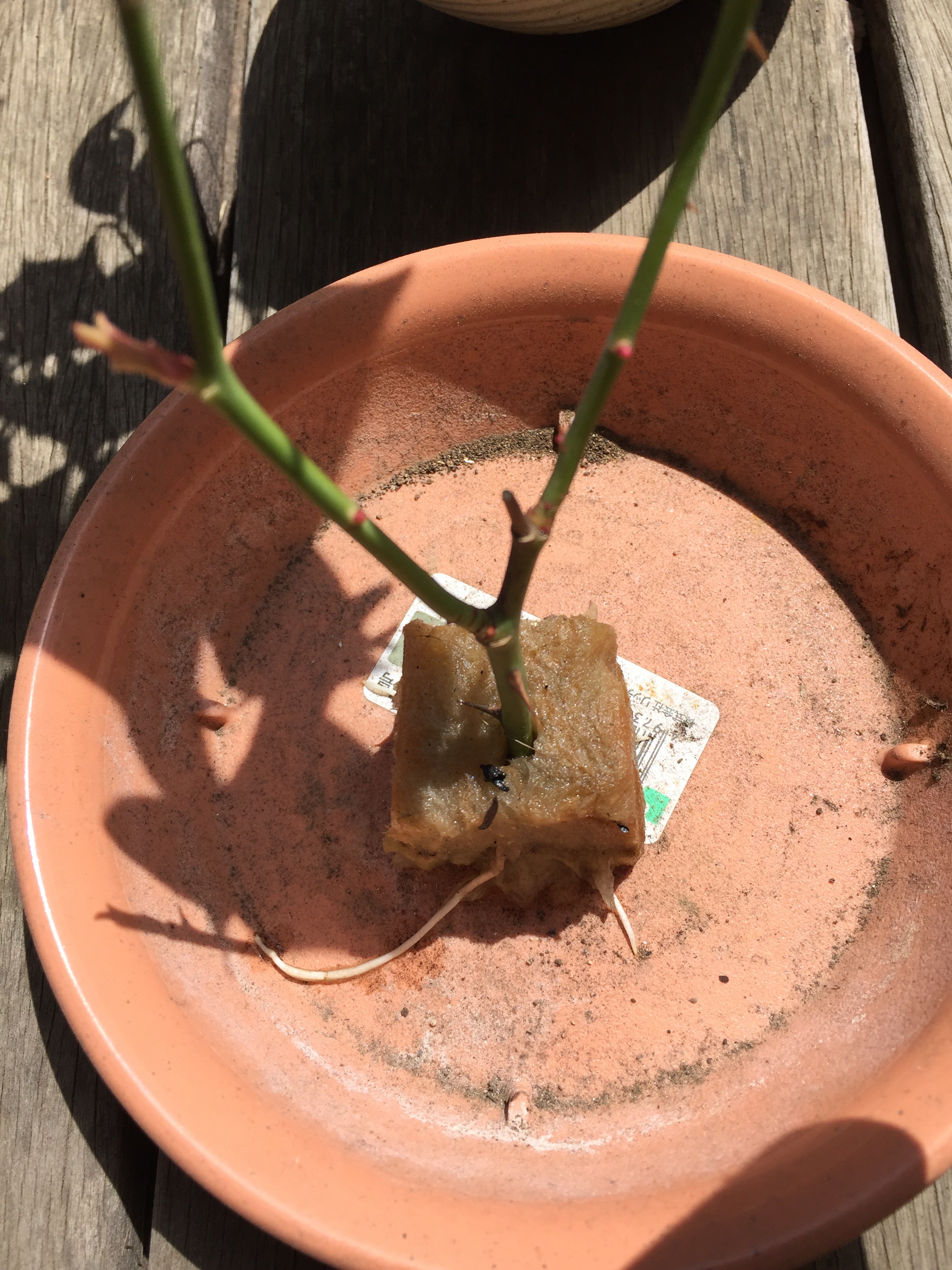2017年04月15日 KD♪ □ 挿し木 冬の剪定から2ヵ月、つるバラは4ヵ月それぞれ初根しました!ウールウレタンは本当に手軽で優秀。 手当たり次第。の冬。玄関で越冬しました。 白い根っこがのびのび。今回は2苗成功。つるバラは1苗。無事に育ちますように。暖かくなったので植木鉢に植えてナーサリーに参加。 梅の剪定もしたついでに挿し木にしたら芽を伸ばしたので植えてみました。同じバラ科だし。。。 嫁に出す日が来るかなー?